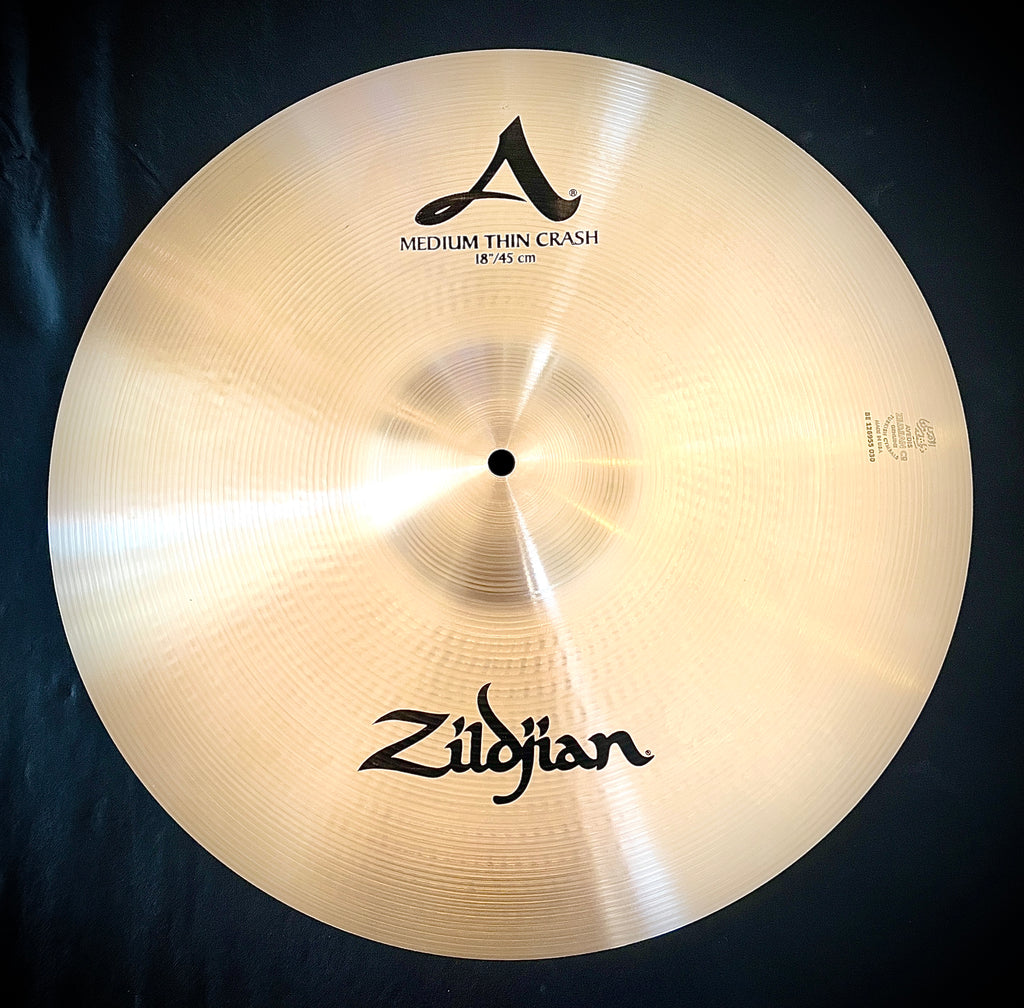 The Zildjian A Medium Thin Crash has the kind of classic Zildjian sound that works for any style of music. This versatile crash is made from cast bronze with a thin profile and symmetric hammering pattern for a complex tone that cuts through a mix. With its dark pitch and medium sustain, the A Medium Thin Crash is good for both stage or studio applications, from swing to metal. This crash has a traditional-finished top and bottom for an inviting look under stage lights and packs up easily thanks to its light weight and thin size. For an all-purpose crash sound that transcends genres, drummers everywhere recommend the 18" Zildjian A Medium Thin Crash.